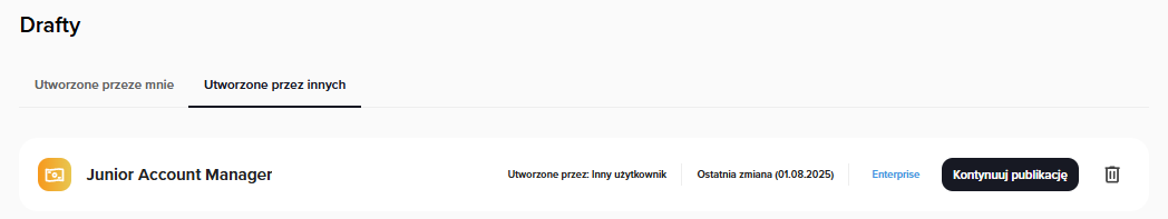 W zakładce "Drafts" znajdziesz wersje robocze ogłoszeń. W każdym momencie możesz do nich wrócić i je opublikować.