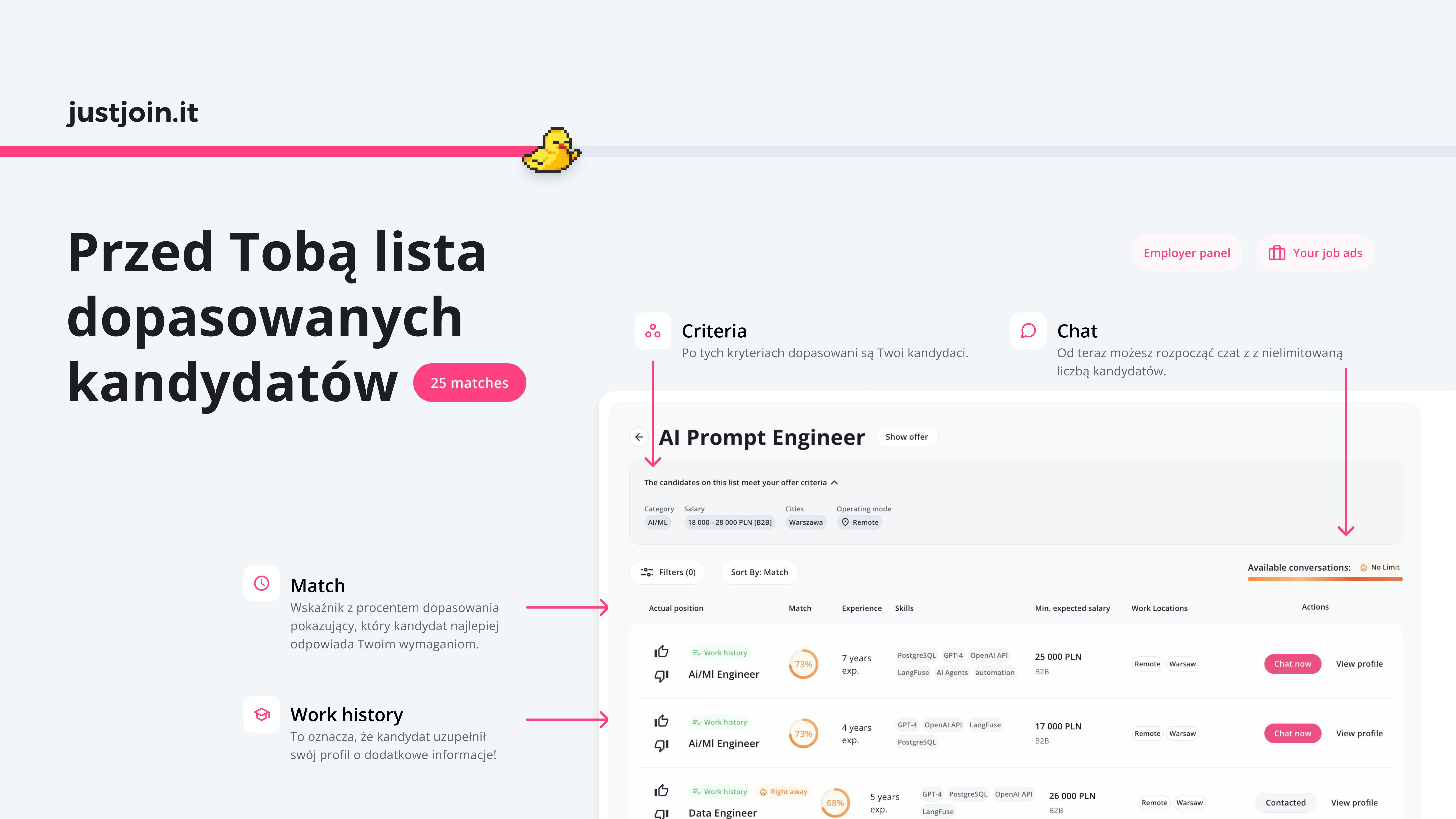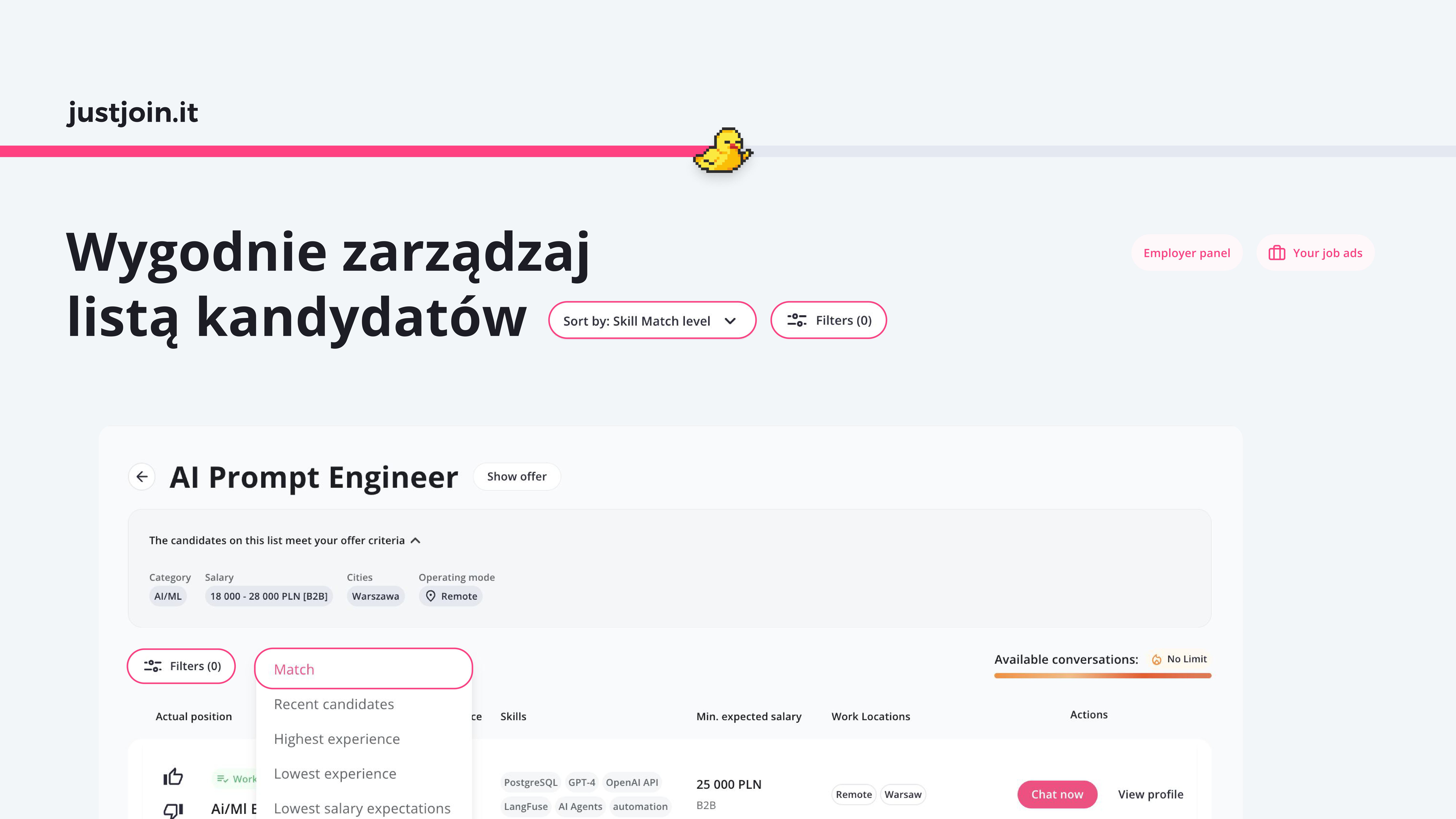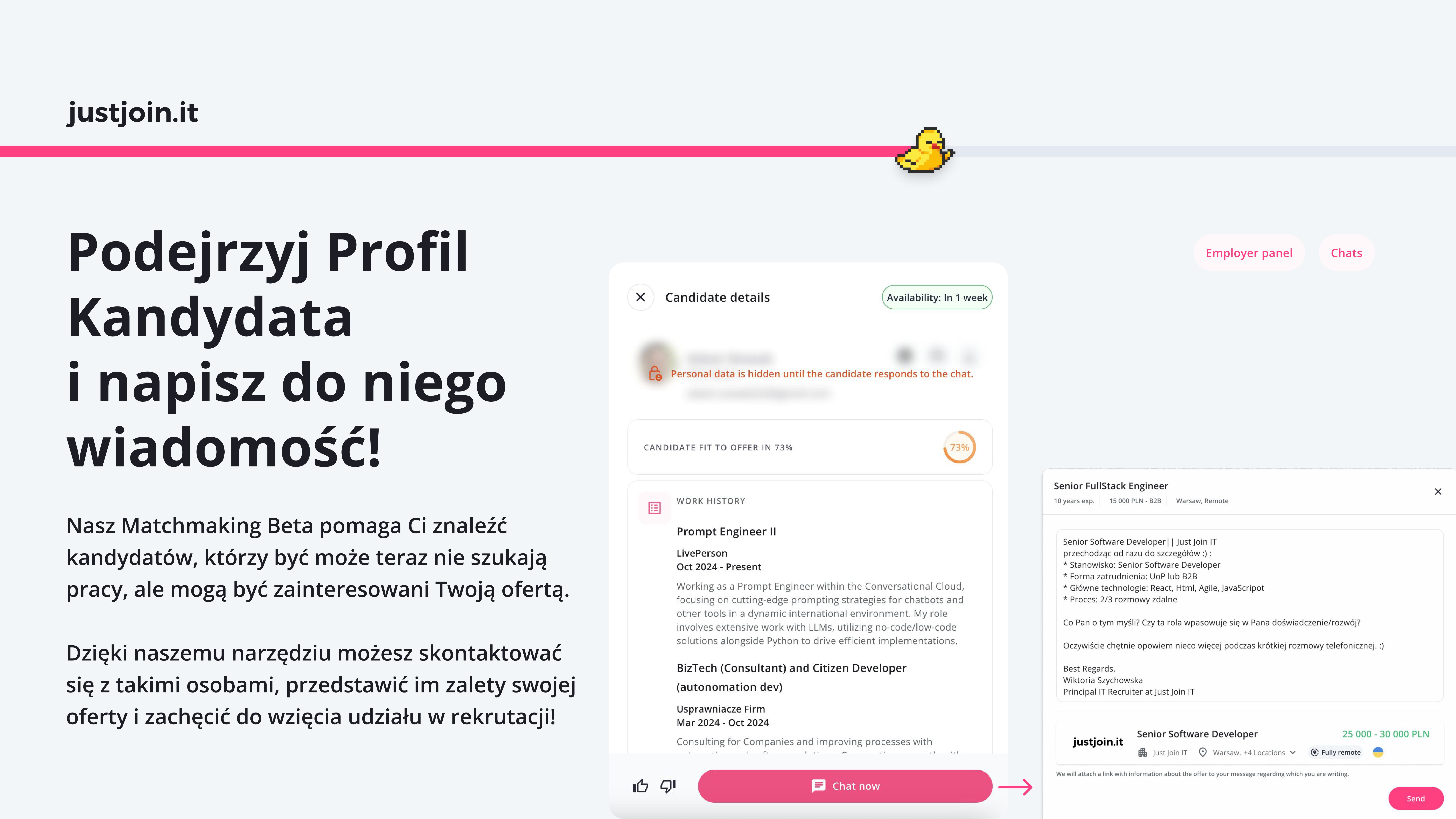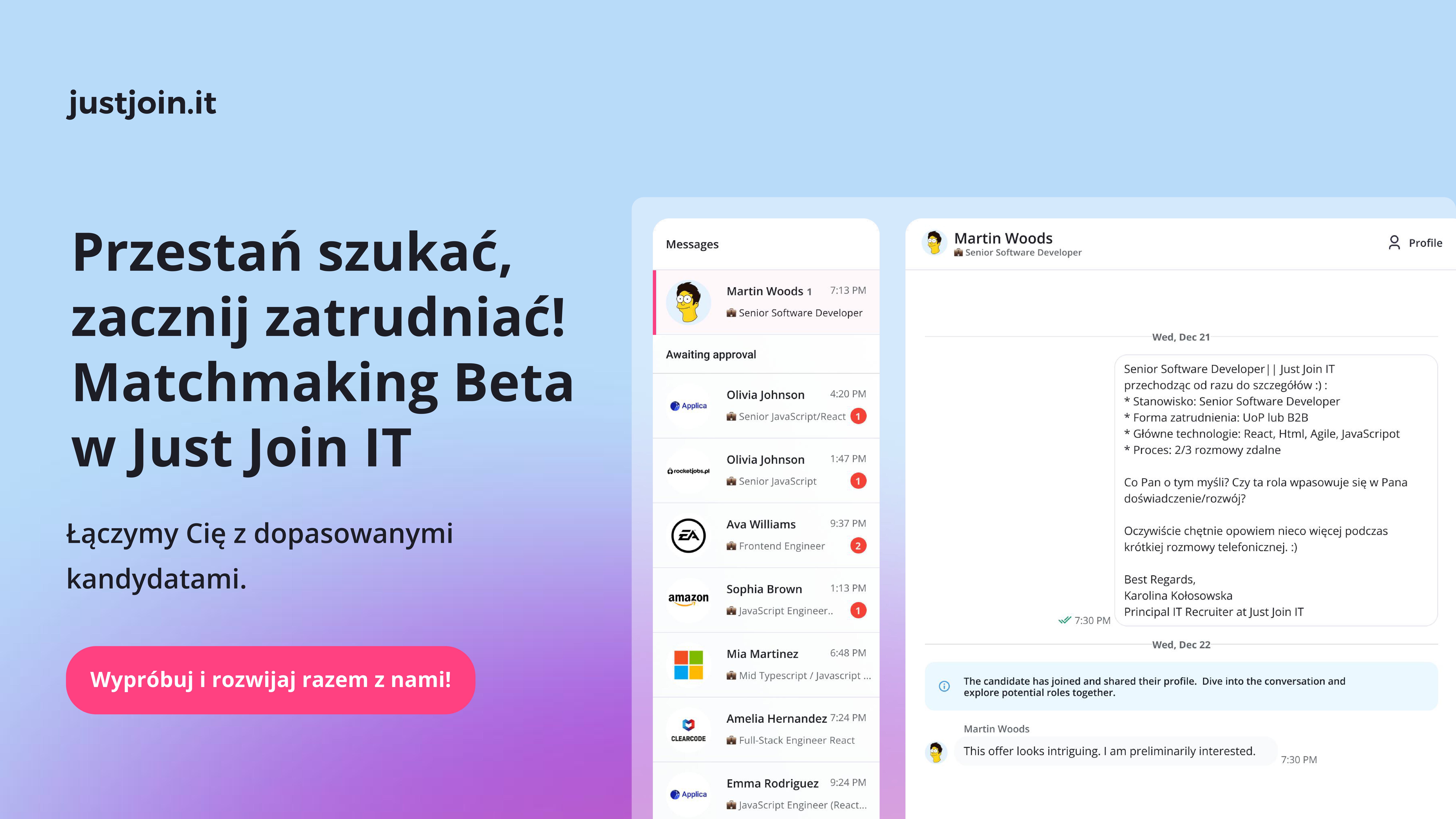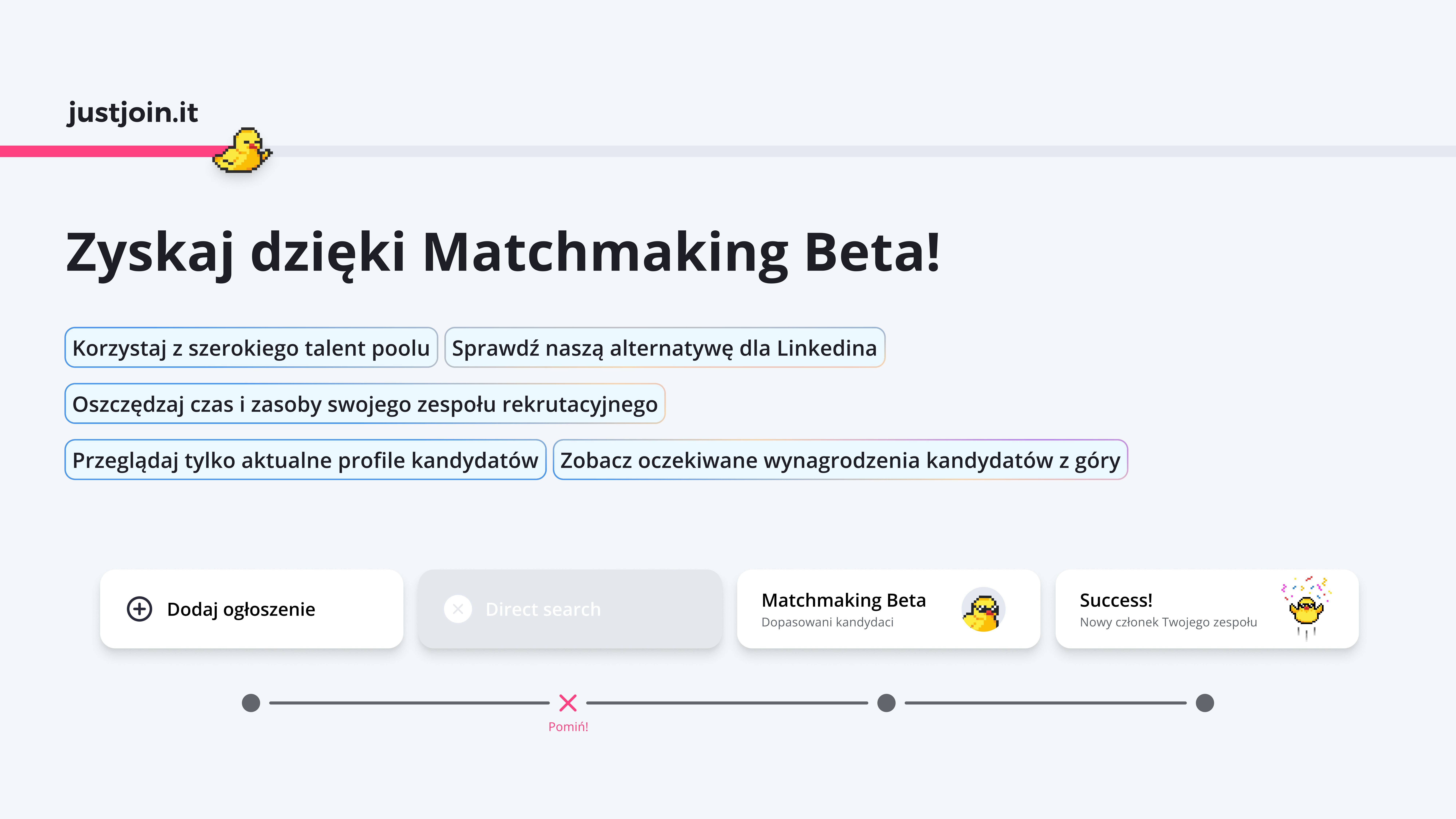 Ten krótki poradnik przeprowadzi Cię przez proces korzystania z Matchmakingu Beta na justjoin.it — od publikowania ofert pracy po wysyłanie wiadomości do dopasowanych kandydatów. Bez zbędnych dodatków, tylko to, czego potrzebujesz, aby zacząć już dziś.