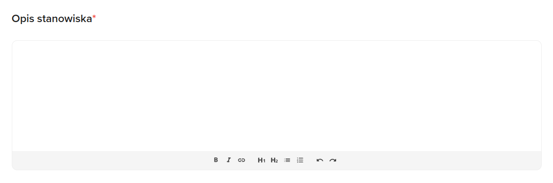 KROK 9: Jeżeli masz gotową treść ogłoszenia, wklej ją w polu "Opis stanowiska", korzystając w razie potrzeby z edytora tekstu, który znajduje się poniżej.