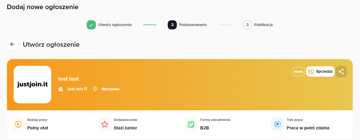 Jeśli Twoja firma pozwala na wybór różnych form zatrudnienia, pokaż tę informację w ogłoszeniu! Wystarczy dodać dodatkowe zatrudnienie klikając na “Dodaj formę zatrudnienia”. Możliwe jest również ustawienie różnych wysokości wynagrodzenia.