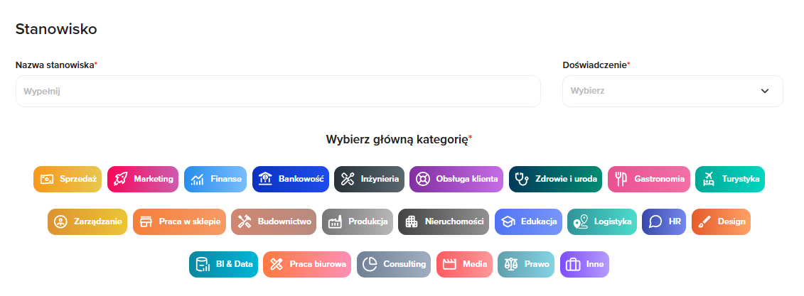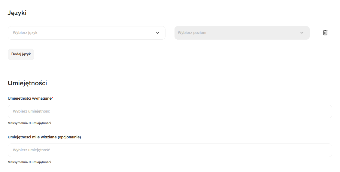 Ta sekcja jest bardzo istotna, ponieważ dobrze przygotowana, przekłada się na większą liczbę dopasowanych kandydatów. Więcej informacji o usłudze Baza Dopasowanych Talentów znajdziesz tutaj.