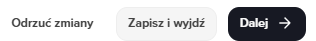 Odrzuć zmiany - zmiany zostaną wycofane i powrócisz do ekranu głównego.
