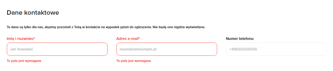 Dane kontaktowe umożliwiają kontakt opiekunów z RocketJobs.pl dotyczący opublikowanej przez Ciebie oferty.