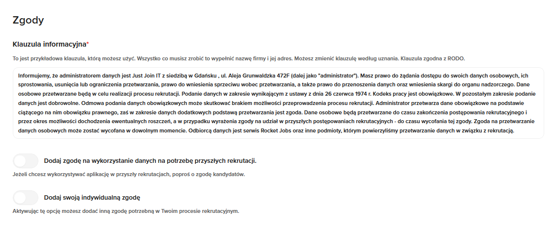 Istnieje również możliwość dodania dwóch dodatkowych zgód: