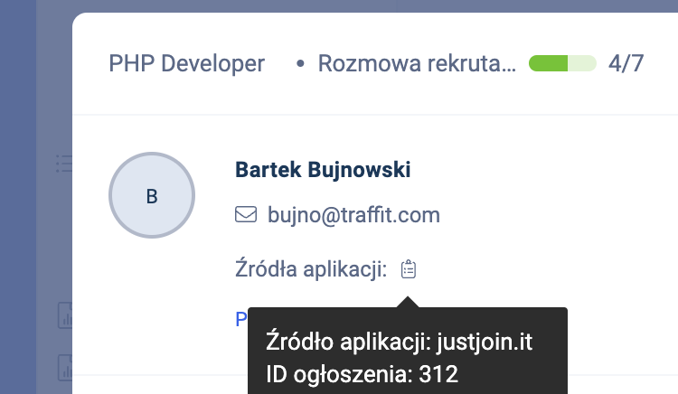 Kandydaci aplikujący z ogłoszenia umieszczonego na naszych portalach będą mieli ich adresy widoczne w polu "Źródło aplikacji":