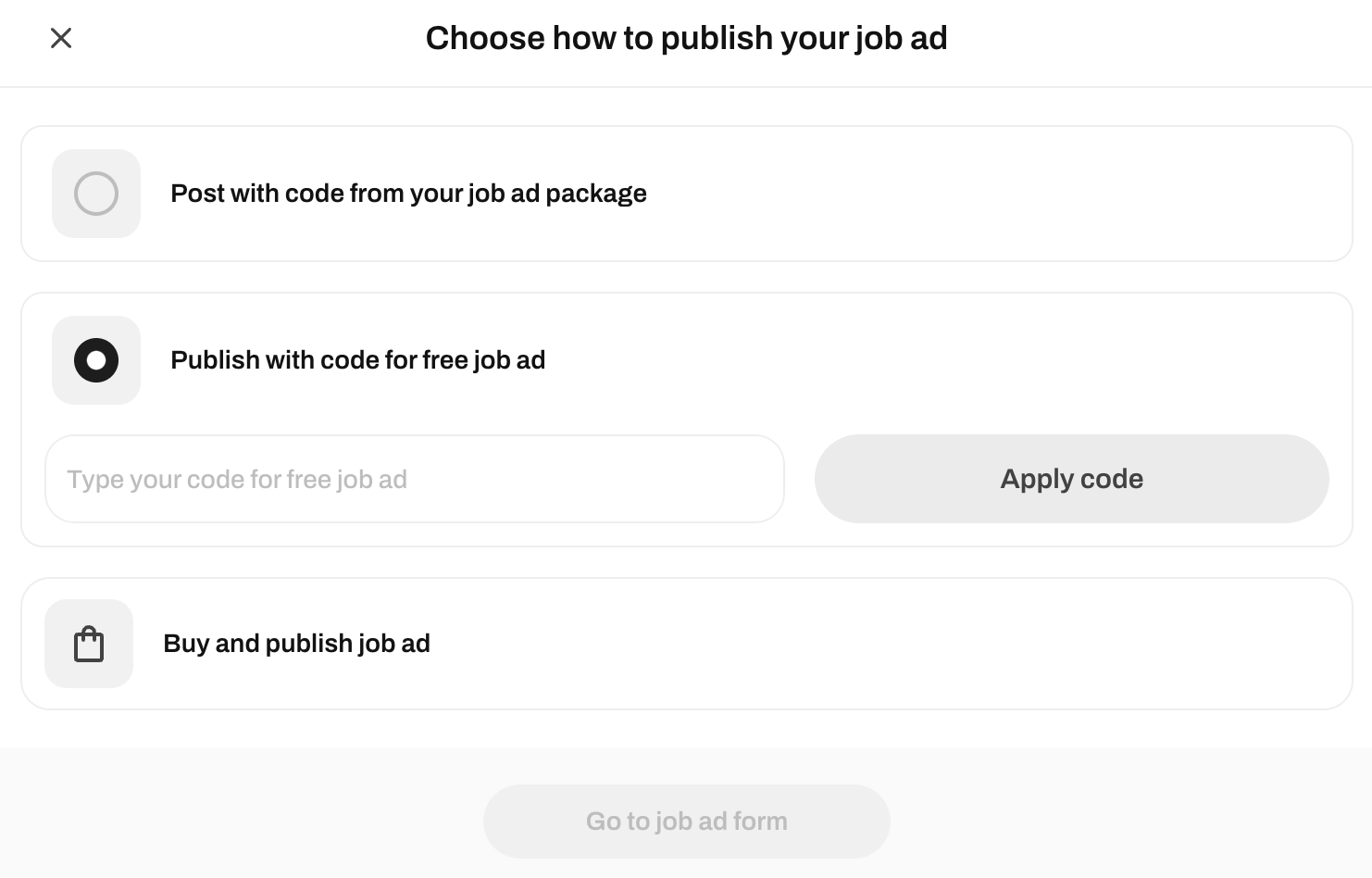 Po poprawnym zastosowaniu kodu wybierz „Go to job ad form”, aby przejść do formularza dodawania ogłoszenia.